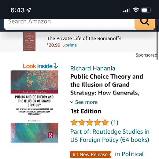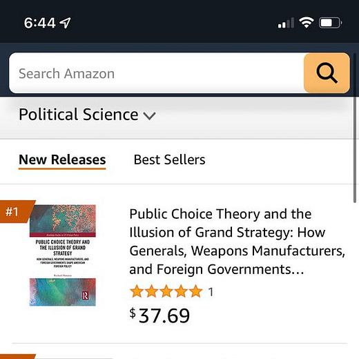 As of this writing, it’s still number 1 among new releases in political science on Kindle, as it was when I wrote this tweet a few days ago.