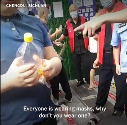 The masked police sprayed him with disinfectant. China should build a statue of this man if they ever get a non-deranged government.