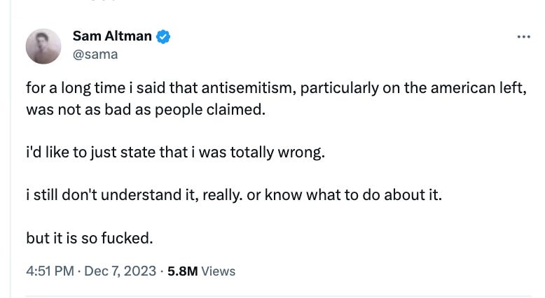 Although it’s true that “the plural of anecdote is not data,” when we’re talking about a highly selected population that is extremely small, anecdotes are more meaningful than they would be in other contexts. If one politically active billionaire changes his political orientation, it becomes national news because we know that alone could have a major impact on society. Sam Altman, the most influential person in AI, becoming more skeptical about the American left is pretty important, and a smart movement will take that over a temporary shift in polling results.